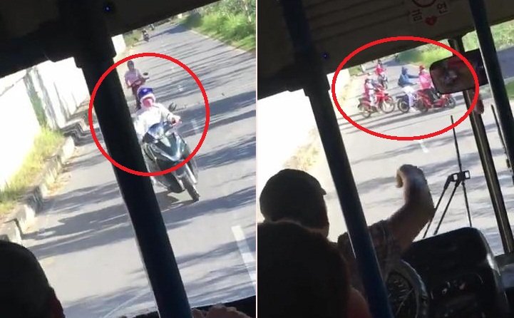 Sự việc được cho là xảy ra dưới chân cầu vượt 789, TP Hải Dương, tỉnh Hải Dương. Sau khi nghe cảnh báo giả của tài xế xe buýt, phần lớn xe đi ngược chiều đều hốt hoảng quay đầu, chỉ một số xe vẫn cố tình đi tiếp.