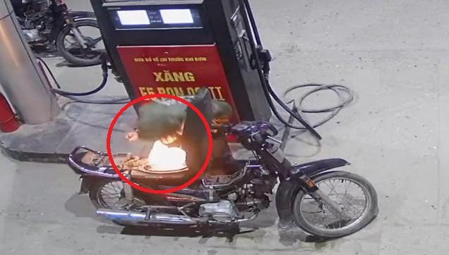 Các nhân viên cây xăng cuống cuồng chạy tới dắt chiếc xe đang cháy ngùn ngụt cách xa khỏi trụ bơm xăng rồi dùng bình cứu hỏa dập lửa kịp thời nên hậu quả không quá nghiêm trọng.