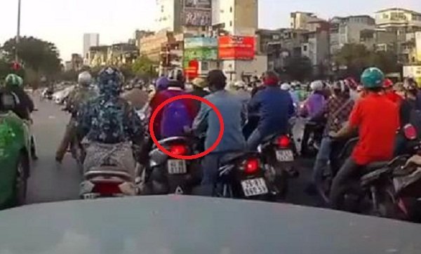 Sau hồi còi cảnh báo của tài xế, cô gái giật mình quay lại và kiểm tra lại balo của mình, trong khi người đàn ông móc túi rụt tay lại, tỏ ra tỉnh bơ như không có chuyện gì.
