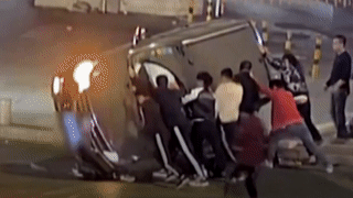 Tài xế Trung Quốc lái xe trong tình trạng say xỉn gây tai nạn khiến xe lật ngửa, người đi đường lật ô tô cứu người mắc kẹt trong xe.
