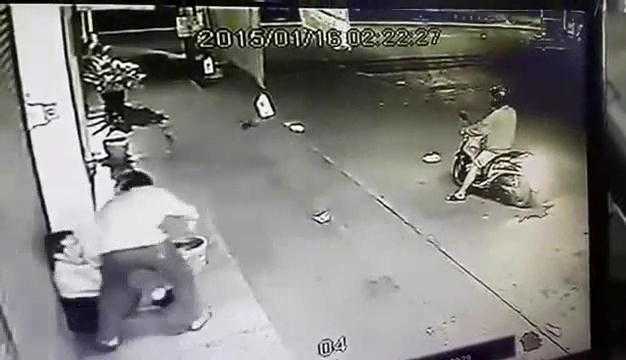 (VTC News) - Kẻ ngồi sau xe máy nhảy xuống và đe dọa lấy điện thoại của người đàn ông đang ngồi trên vỉa hè.