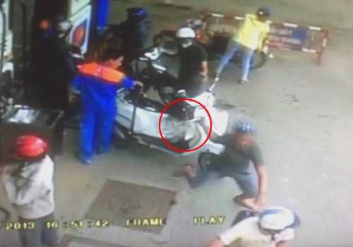 (VTC News)- Hai tên cướp cũng theo cô gái vào đổ xăng nhưng lợi dụng lúc sơ ý, giật phăng túi xách nằm trong cốp xe LX và bỏ chạy.