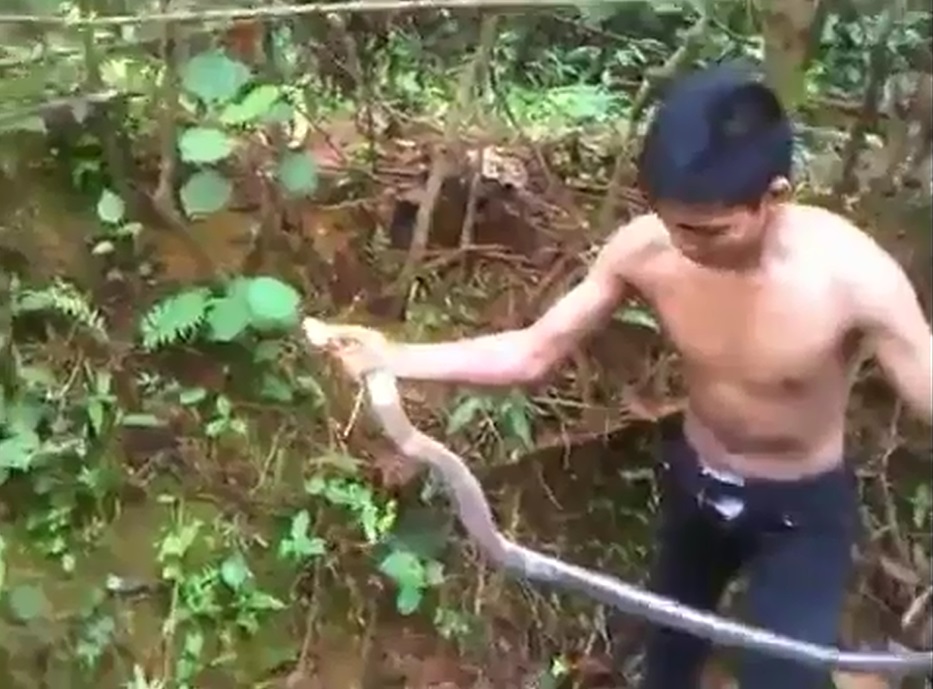 (VTC News) - Những người thanh niên không trang bị bảo hộ, đuổi theo và dùng tay không bắt rắn hổ mang trong rừng khiến người xem rùng mình.