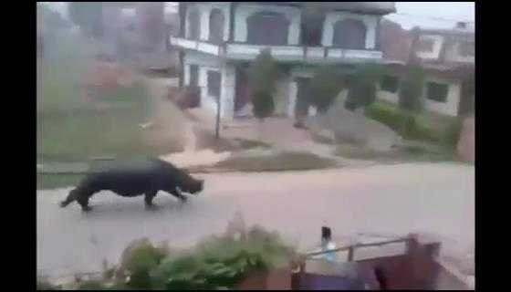 Người dân ở thị trấn Hetuada đã hoảng loạn vì một con tê giác bất ngờ đuổi theo người đi xe máy và tấn công một số người khác.