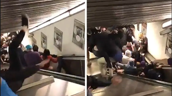 Thang cuốn đột ngột tăng tốc khiến hàng chục người ngã chồng lên nhau, ít nhất 20 người bị thương, 7 người bị thương nặng, 1 người phải cưa chân. Ngay sau sự cố, nhà ga bị đóng cửa, hơn 100 lính cứu hộ được điều tới hiện trường, nơi các bậc thang cuối cùng đã hoàn toàn sụp đổ, vỡ vụn.