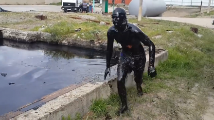 Chàng trai người Nga hào hứng nhảy xuống bể dầu thải đen ngòm trước mặt hội bạn thân và ngay lập tức hối hận vì hành động dại dột của mình.