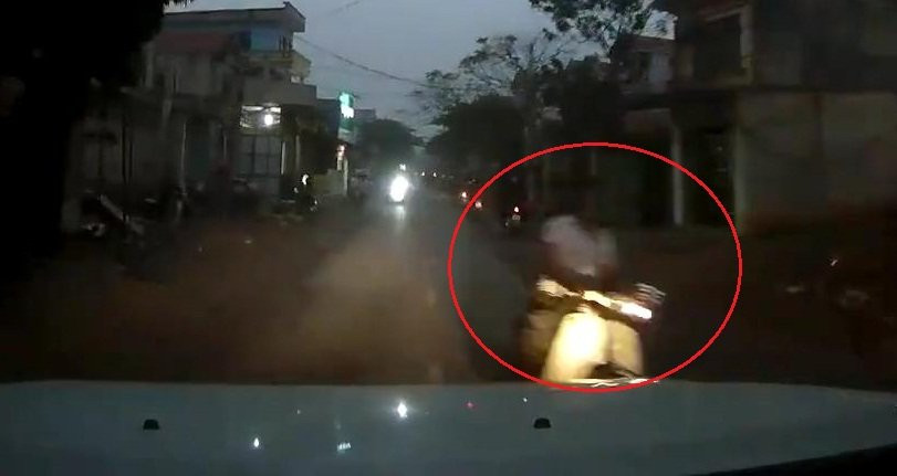 Nam thanh niên chạy xe máy không đội mũ bảo hiểm, mải dùng điện thoại nên không chú ý đường, suýt chút nữa đâm trực diện ô tô gắn camera hành trình.