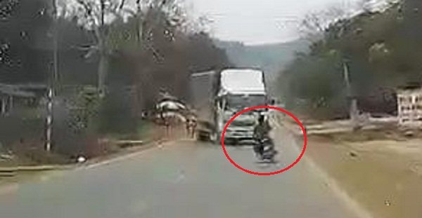 Clip: Thanh niên đầu trần chạy xe máy lạng lách, đâm sầm vào xe tải