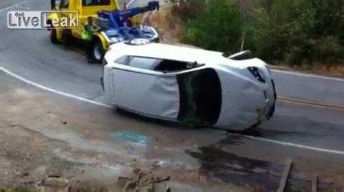 | Chiếc xe vừa được đội cứu hộ lật lại liền lao thẳng xuống mái dốc bên đường. Xem Clip |