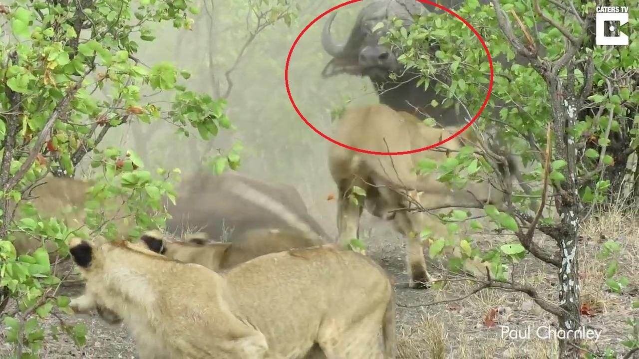 Clip: Thấy con bị ăn thịt, trâu mẹ nổi điên đuổi đánh 14 sư tử