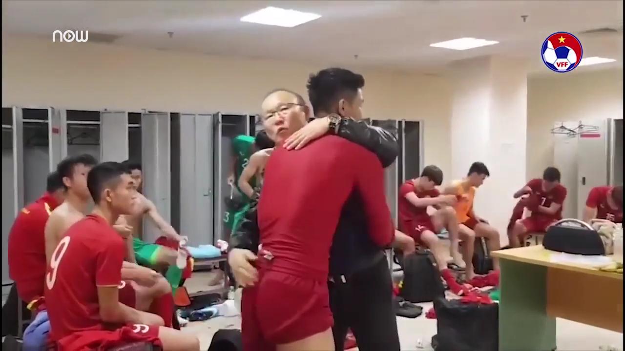Clip: Thầy Park xúc động ôm cảm ơn từng học trò sau chiến thắng