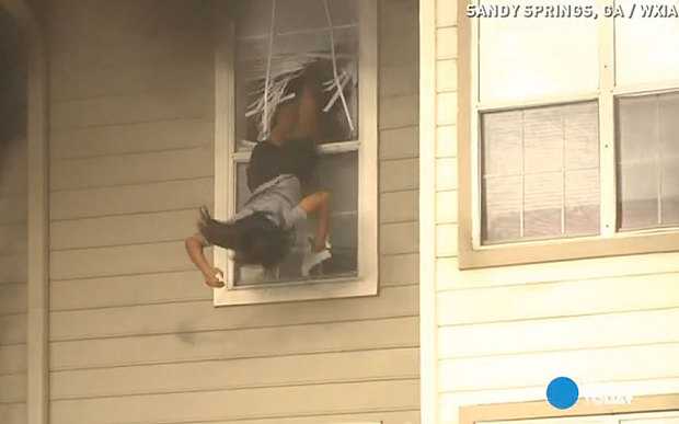 03/07/2015 12:08:00 +07:00Hai cô gái ở thành phố Atlanta (bang Georgia, Mỹ) đã liều mình nhảy xuống từ phòng ngủ tầng 3 để thoát khỏi ngôi nhà đang chìm trong lửa dữ.
