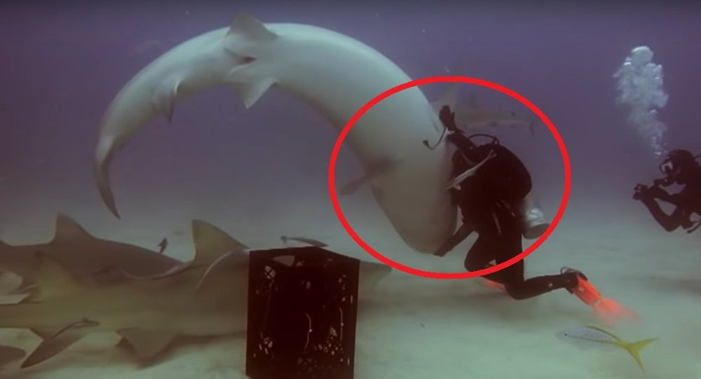 Clip được quay ngoài khơi bờ biển Tiger, Bahamas. Sau khi bị thôi miên, con cá mập hổ ngoan ngoãn lật người lại để thợ lặn kiểm tra.