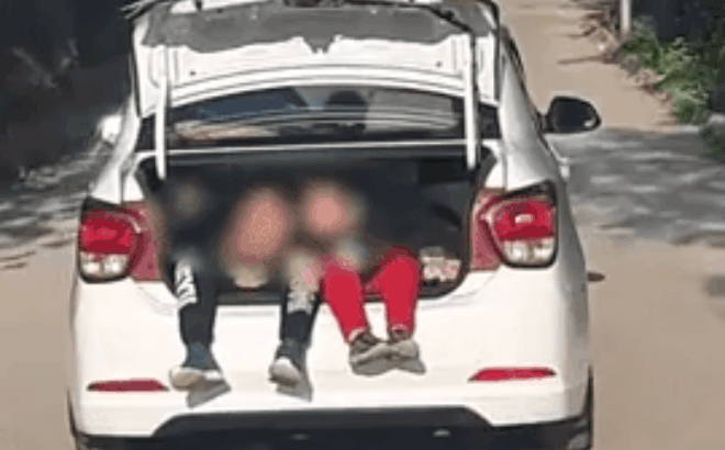 Vụ việc xảy ra vào ngày 7/12 tại quận Tây Hồ, Hà Nội. Đoạn clip được ghi lại bởi người đi xe phía sau, quay cảnh chiếc ô tô đang chạy băng băng trên đường với chiếc cốp sau mở rộng. Trong cốp xe, 2 bé trai (khoảng 6-7 tuổi) ngồi lọt xuống dưới, thò chân ra ngoài đu đưa, vô tư nói chuyện và đùa nghịch với nhau.