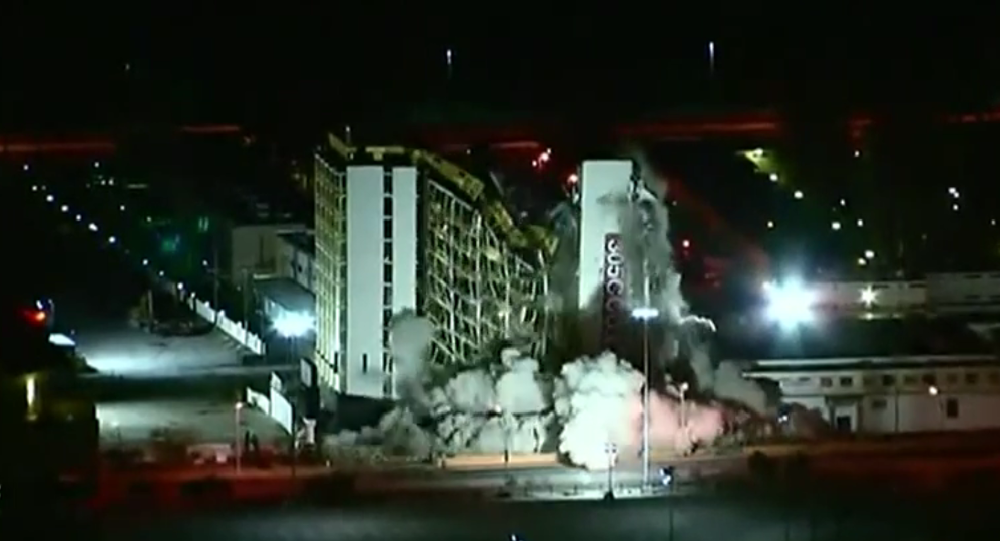 Nhằm mục đích xây dựng tòa nhà mới, người ta đã dùng 4.400 kg thuốc nổ để phá hủy tòa nhà 12 tầng này trong chốc lát.