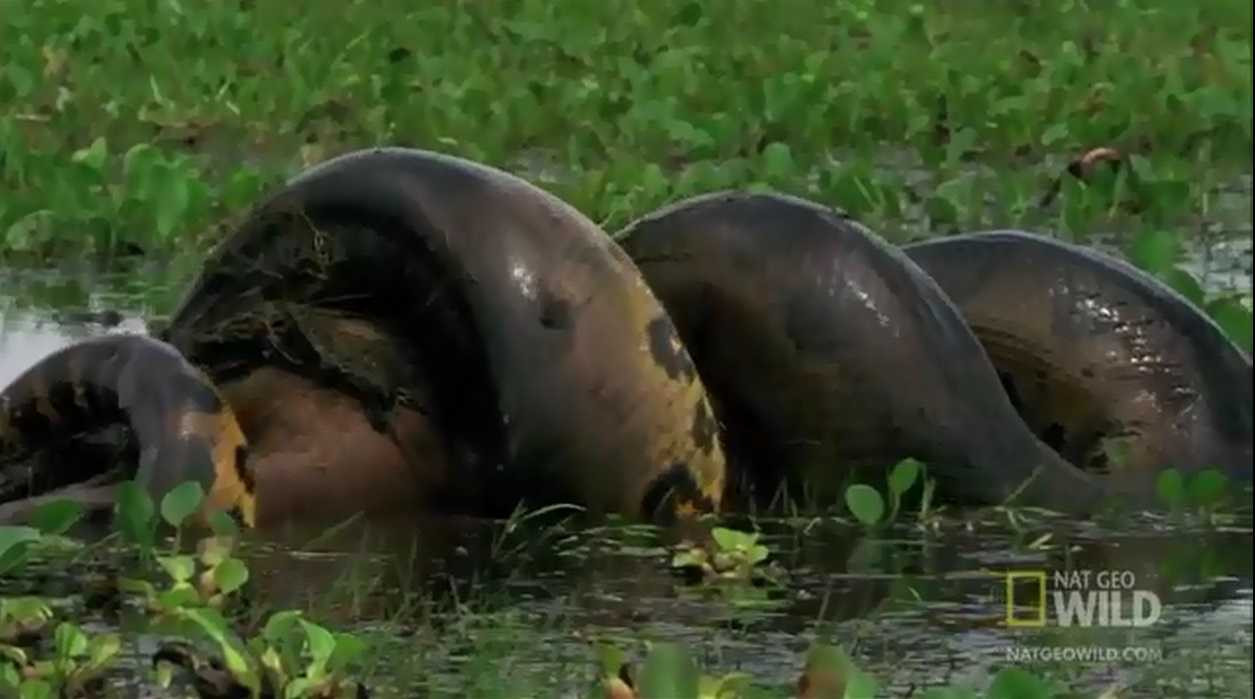 Nam Mỹ với chiều dài lên đến 7m siết chặt từ từ rồi hạ gục chuột lang nước để lấp đầy cái bụng rỗng nó của nó.