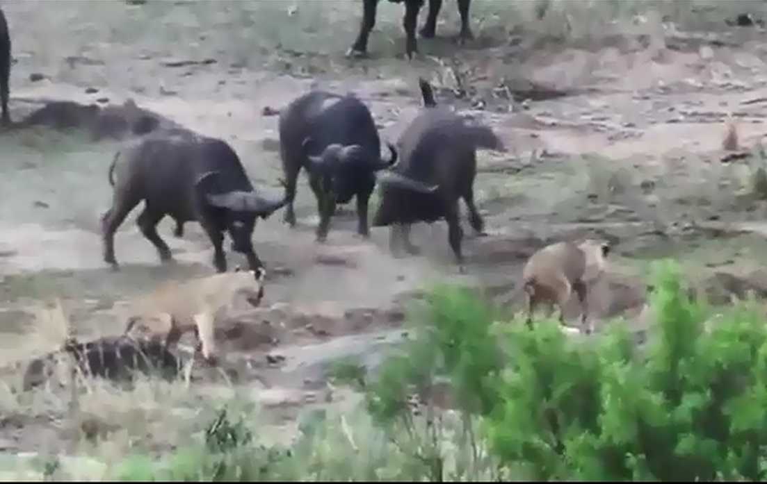 Clip: Trâu rừng hợp lực đuổi lui bầy sư tử cứu bạn