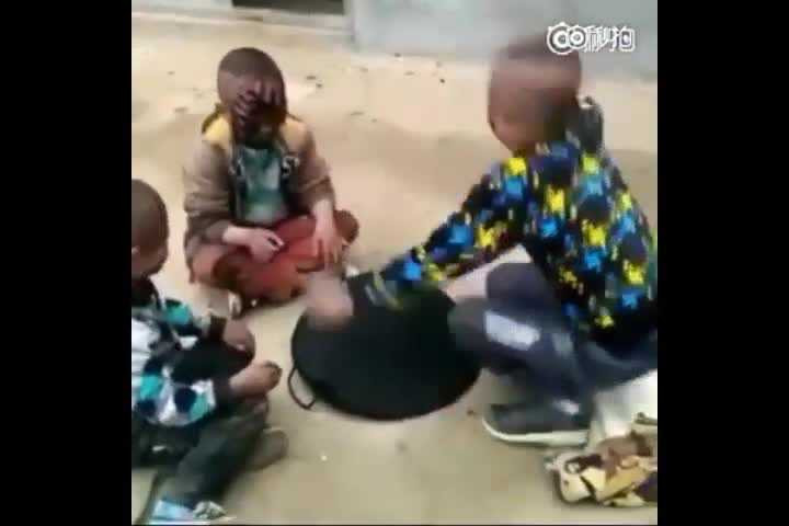 Clip được cho là quay các em bé người Trung Quốc, đang vui vẻ với oẳn tù tì và quệt nhọ vào mặt bạn chơi.