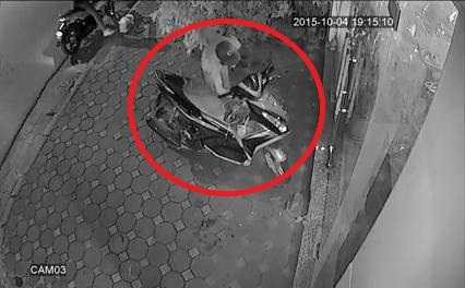Tên trộm thao tác mở khóa quá nhanh khiến chủ xe máy trở tay không kịp.