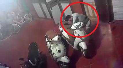 (VTC News) - Tên trộm lén mở cửa bước vào sân, lại gần chiếc xe ga và loay hoay mãi vẫn không thể bẻ được khóa.