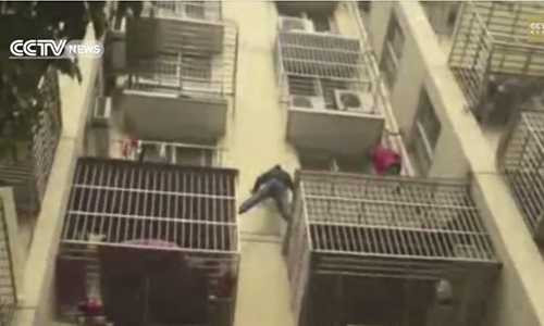 (VTC News) - Sau khi bị phát hiện, tên trộm trèo qua ô cửa sổ, bám theo khung sắt bảo vệ vào một nhà khác trốn khi cảnh sát tới.