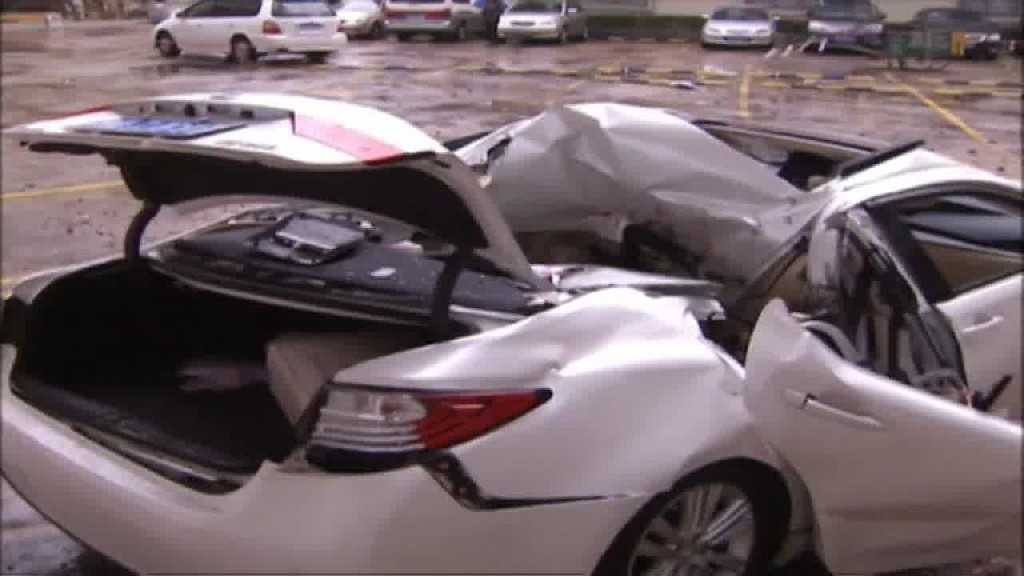 (VTC News) - Mảng tường trên tầng thượng một chung cư ở Trung Quốc bất ngờ đổ sập, rơi xuống bãi đỗ xe phía dưới khiến hàng loạt ôtô bẹp rúm.