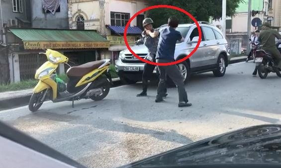 Sau va chạm giao thông, tài xế Honda CRV và người đàn ông lái xe máy lao vào đánh đấm nhau dữ dội trên đường Âu Cơ, quận Tây Hồ, Hà Nội sáng 13/8.