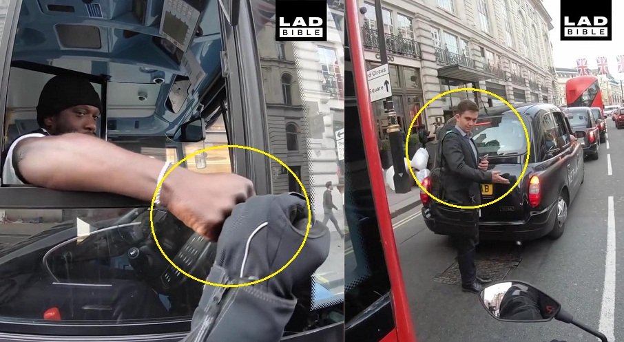 Lúc này, tài xế xe buýt giơ ngón tay cái với người lái mô tô như muốn nói: "Làm tốt lắm anh bạn" rồi cả hai cụng tay nhau thay lời tạm biệt.