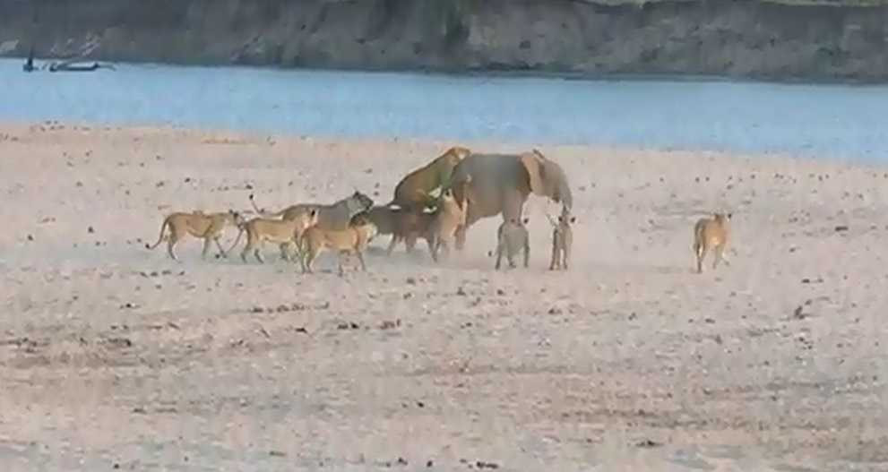 Clip: Voi con đơn độc chống lại 14 sư tử