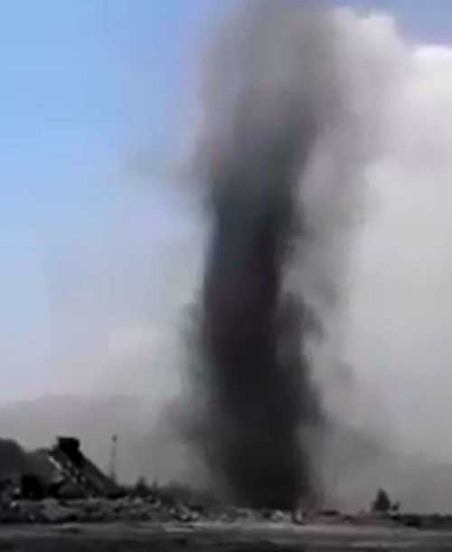 Với tốc độ gió lốc cuốn mạnh trên khai trường, kèm theo bụi than đã tạo thành một ‘vòi rồng đen’, khiến nhiều người dân kinh ngạc.