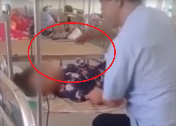 Theo dõi hình ảnh trong đoạn clip cho thấy, người đàn ông trung niên bực tức, khó chịu khi phải "phục vụ" vợ trong viện. Người đàn ông gắt, "Nằm im nào", sau đó nhấc mạnh đầu vợ đặt vào chính giữa chiếc gối. Có lẽ khó chịu, người vợ liên tục cử động, thấy vậy ông chồng hầm hừ, "Mày thích không? Gồng à? Này tay, mày không thấy đầy kim đây à?" rồi bóp chặt bàn tay đang cắm kim truyền của vợ.