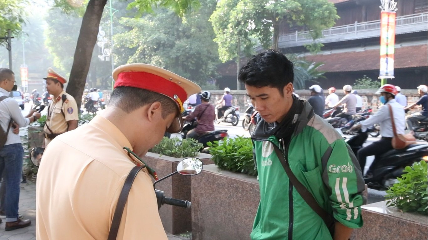 Cho rằng không có “cảm giác” vi phạm vượt đèn đỏ vì vẫn đang di chuyển theo luồng xe, lái xe ôm Grab vẫn muốn tổ công tác đưa ra hình ảnh chứng minh.