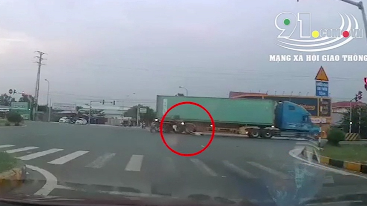 Clip: Vượt đèn đỏ, xe máy tông thẳng vào container, tài xế nằm bất động tại chỗ