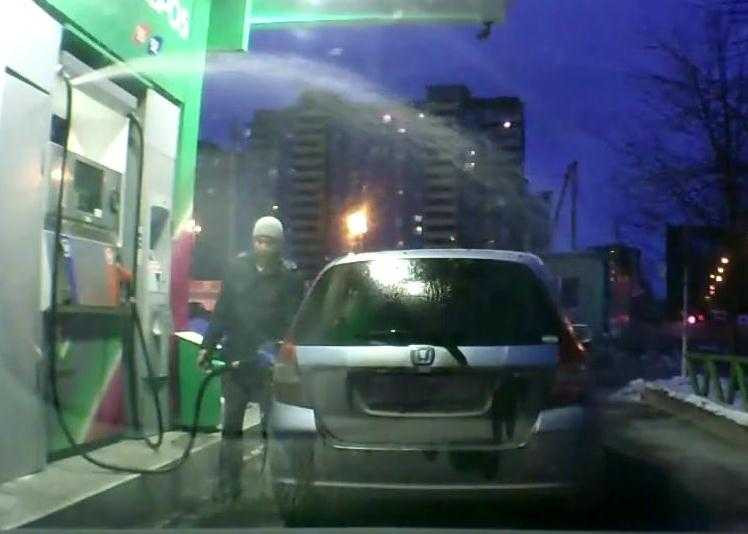 Tại một trạm đổ xăng ở thành phố Iekaterinbourg thuộc Nga, sự cố xảy ra khiến thay vì xăng được đổ vào bình xe lại phun thẳng lên nóc ôtô.