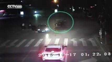Sau va chạm với một ô tô ở ngã tư, các hành khách trên xe ba bánh sợ hãi xuống xe nhưng chiếc xe kỳ quái vẫn tiếp tục lao đi, xoay vòng tròn và đâm vào nhóm người một lần nữa khiến 2 người trong số đó bị thương.