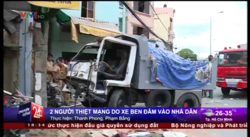 (VTC News) - Sáng 21/5, một chiếc xe ben đang đổ dốc cầu Nhị Thiên Đường, Quận 8, TP.HCM đã bất ngờ lao thẳng vào một tiệm sửa xe bên đường, khiến 2 người tử vong.