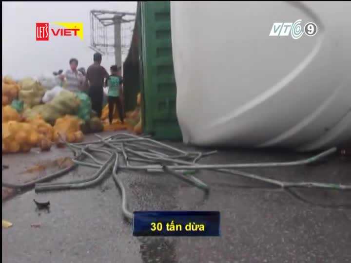 Clip: Xe container lật, dân Hà Tĩnh đội mưa gom 30 tấn dừa giúp tài xế