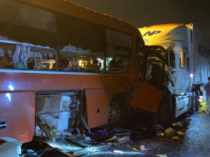 Clip: Xe đầu kéo va chạm với xe khách, 2 người chết tại chỗ, 17 người bị thương