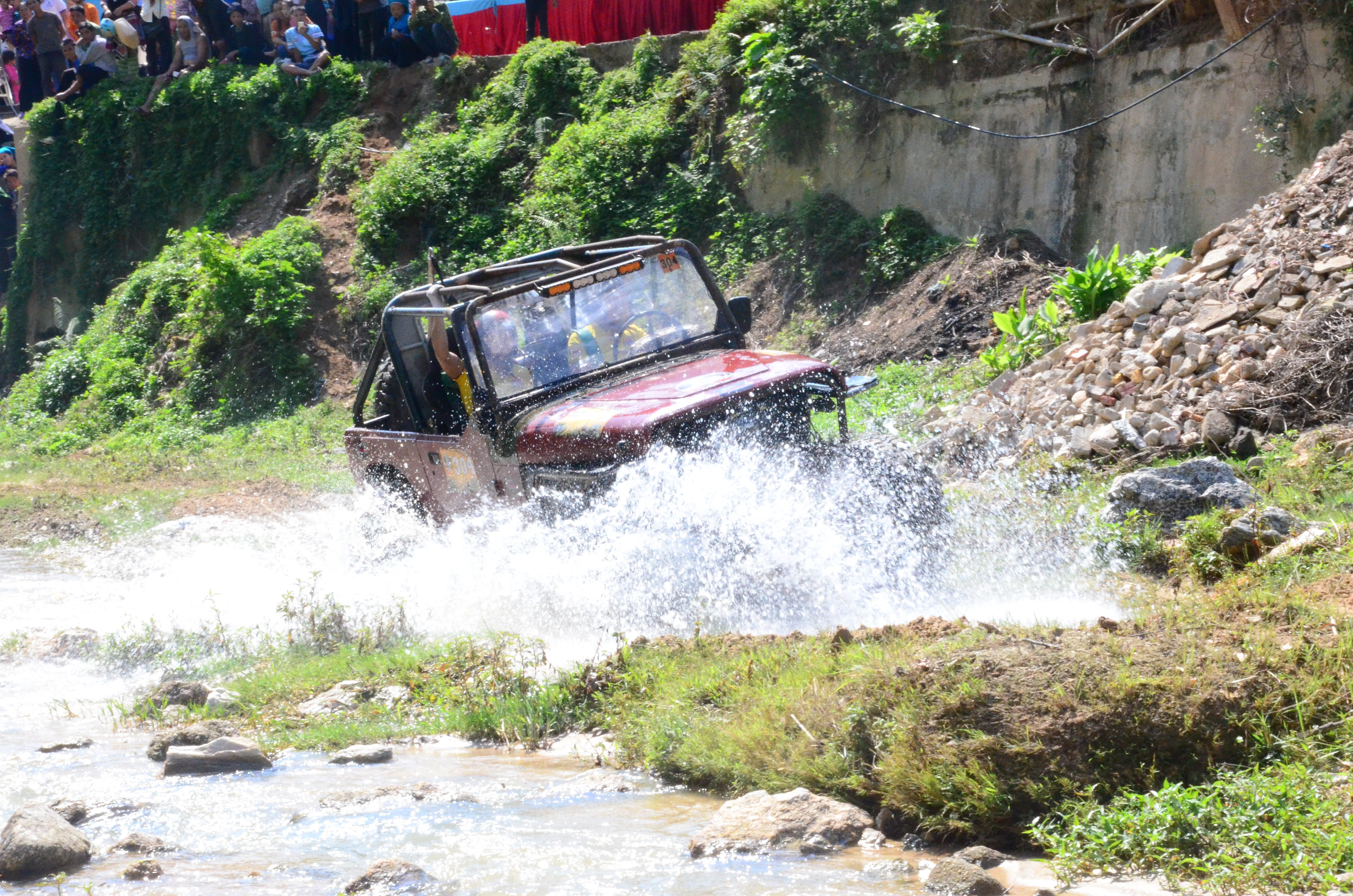 Ô tô địa hình bị mất một bánh vẫn lao băng băng về đích đúng giờ khiến người xem ở Hà Giang thích thú.