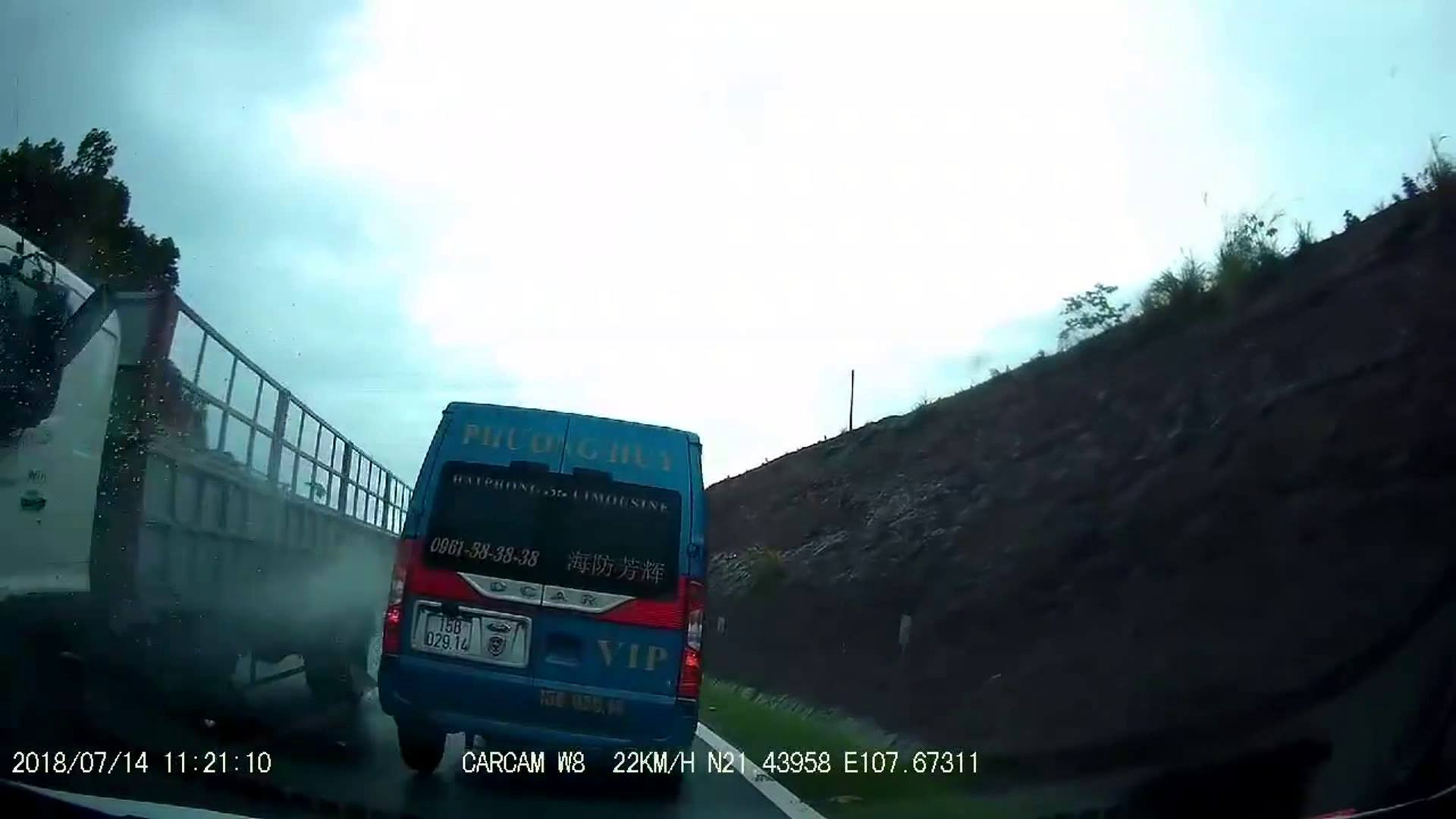 Một chiếc xe khách 16 chỗ vượt ẩu đã suýt đâm trực diện với xe tải ở Quảng Ninh khiến nhiều người đi đường hú vía.