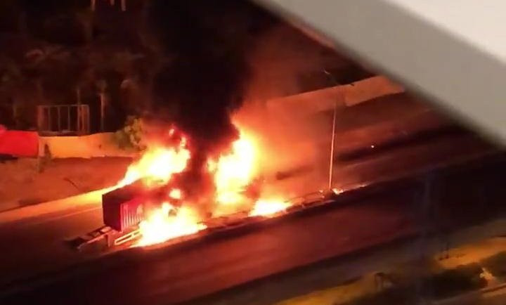 Rạng sáng 11/7, xe khách giường nằm va chạm container rồi bốc cháy ngùn ngụt trên đường vành đai 3 trên cao, đoạn gần ngã tư Phạm Hùng - Khuất Duy Tiến, hướng về Mai Dịch, Hà Nội.