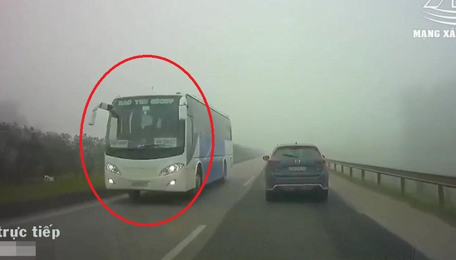 Bất chấp nguy hiểm khi thời tiết nhiều sương mù, tầm nhìn hạn chế, xe khách Samsung ngang nhiên đi ngược chiều trên cao tốc Hà Nội - Thái Nguyên, đoạn qua thị xã Phổ Yên, tỉnh Thái Nguyên.