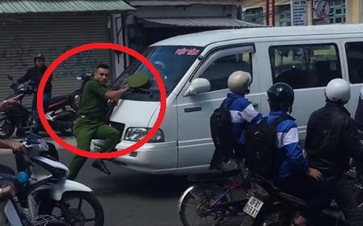 Xe khách vi phạm giao thông bị cảnh sát yêu cầu dừng xe kiểm tra, nhưng thay vì chấp hành, tài xế lại lái xe ủi cảnh sát đi một đoạn dài trên đường Bùi Thị Xuân, TP Đà Lạt, Lâm Đồng.
