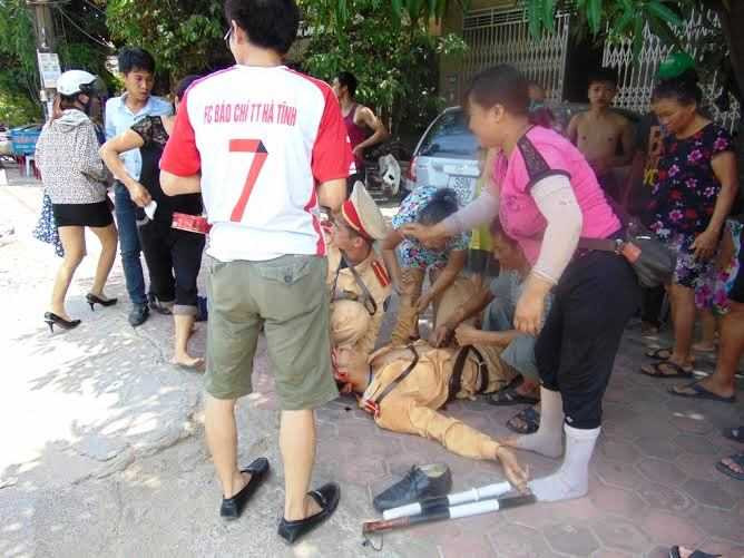 Trưa 4/7, trên đường Hà Huy Tập, TP Hà Tĩnh, khi ra hiệu lệnh dừng một chiếc xe máy vi phạm tốc độ, một trung úy CSGT đã bị chiếc xe này lao thẳng vào người.