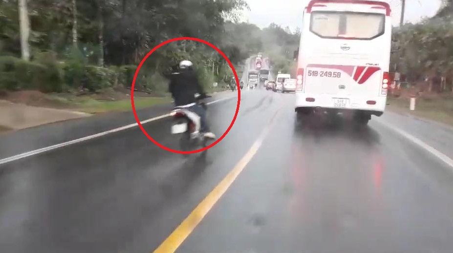 Thanh niên lái xe máy phóng nhanh vượt ẩu trên đường ướt mưa, lao thẳng vào gầm xe tải ngược chiều tại xã Đạ Oai, huyện Đạ Huoai, tỉnh Lâm Đồng.