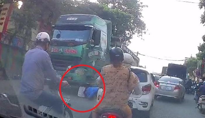 Clip: Xe máy sang đường kiểu tự sát, suýt chết dưới bánh xe 'hổ vồ'