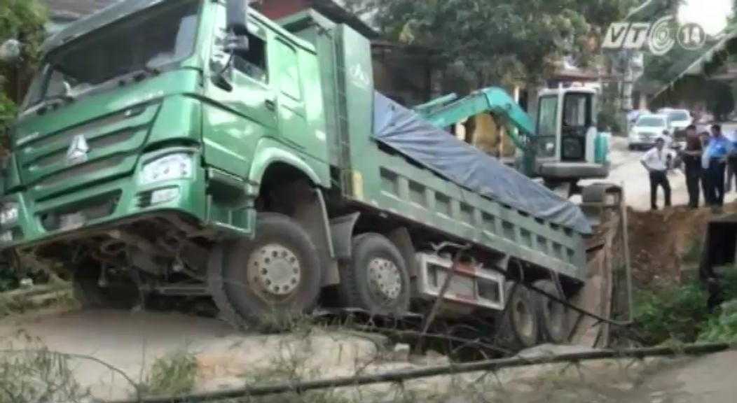 (VTC News) - Một chiếc cầu ở thành phố Yên Bái, tỉnh Yên Bái bị sập do ô tô quá tải chạy qua.