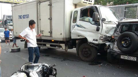 17h ngày 16/4, trong lúc dừng đèn đỏ tại ngã tư bưu điện Lý Thường Kiệt (Đồng Hới, Quảng Bình), một ô tô tải đã gây tai nạn khiến nhiều phương tiện bị hất văng.