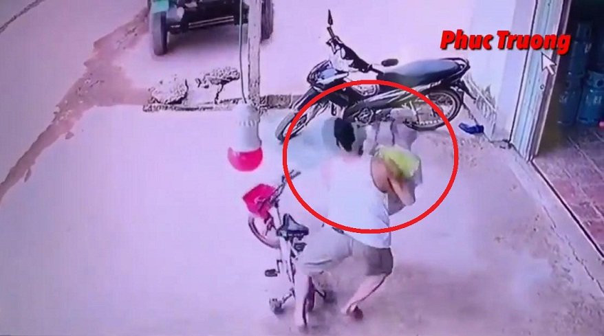 Thấy chiếc xe tự chế lao như bay về phía hiên nhà, người bố phản xạ nhanh như cắt, ôm con chạy vào trong nhà, thoát nạn trong gang tấc.