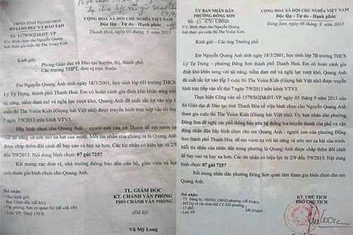 (VTC News)- Lãnh đạo các đơn vị liên quan tại Thanh Hóa đã thừa nhận có gửi công văn để kêu gọi sự ủng hộ của người dân đối với em Quang Anh trong đêm chung kết The Voice Kids.